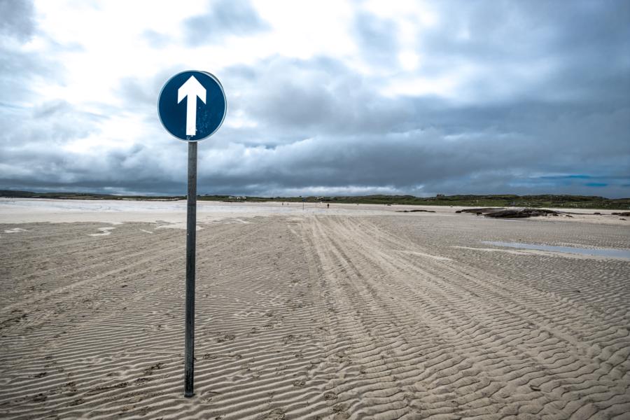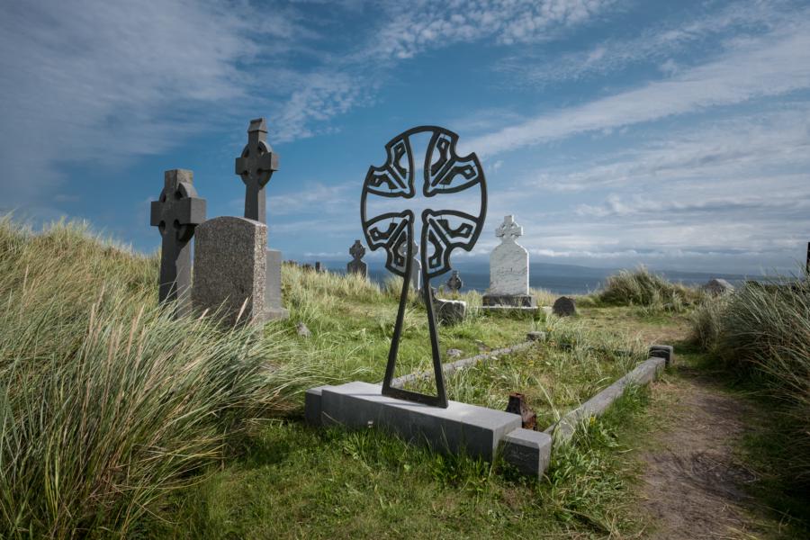 Ein paar Hundert Meter vor der Küste liegt die kleine Insel Omey Island. Bei Ebbe ist diese zu Fuß erreichbar, und mutige oder kundige Besucher fahren mit dem Auto aufs Watt. Ich trau mich das nicht - keine Lust, das Auto auf eine neue Art absaufen zu lassen. So richtig gute Laune kam aber nicht auf, da wir mit den Schuhen im Schlick steckenbleiben und uns fortan mit schmatzenden Füßen fortbewegen.