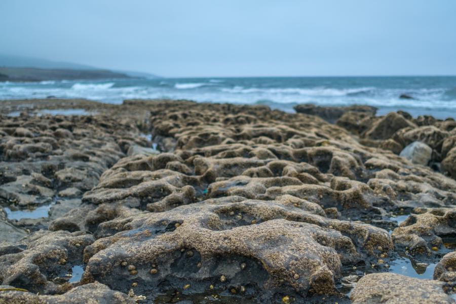 Unsere zweite Unterkunft ist die “Ocean View Lodge”. Meerblick gibt es, auber auf Tuchfühlung mit den Gezeiten ist man nicht. Der Strand liegt ein paar Minuten fußläufig das Sträßchen bergab; dort muss man aber noch eine kleine Steilküste auf einem schmalen Streifen direkt an der Abbruchkante entlang turnen. (Eine Bucht weiter gits auch einen Sandstrand).