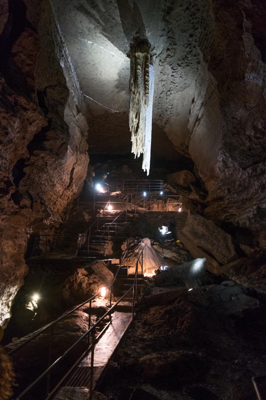 Je länger wir im Burren weilten, umso mehr verstanden wir warum Doolin so überlaufen ist, schließlich häufen sich hier die Sehenswürdigkeiten. Die letzte, die wir uns vornahmen, war die Doolin Cave. Kurze 5 Autominuten entfernt liegt sie, wurde in den 50er Jahren des letzten Jahrhunderts von zwei schottischen Studenten entdeckt und beherbergt einen Stalagtiten (Tropfstein); das besondere an diesem ist die schiere Größe: mit 7 Metern Länge und 10 Tonnen Gewicht ist es der größte in Europa. Die Besichtigung hat Spaß gemacht; es geht mit Bauhelmen 70 Meter un die Erde; die Führung war unterhaltsam.