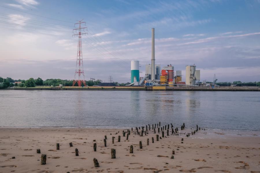 Durch Bremen fahren wir direkt durch und übernachten in Berne. Hier ist die Weser schon ordentlich breit und bietet dank Sandstrand echtes Beachfeeling, im Hintergrund konstratiert von bunter Industrie.