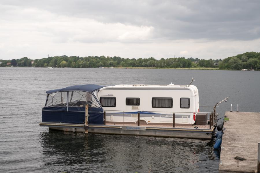 Zum Ende hin kommen wir an den Glindower See und laufen an der Uferkante zwischen See und Ferienhäusern immer noch idyllisch unter Bäumen zurück zum Parkplatz.