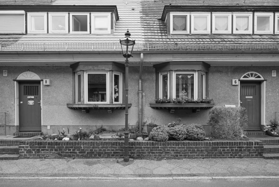 Ich war heute bei bewölkten Himmel unterwegs und habe eine Menge Schwarzweiß-Fotos gemacht. Aber auch bei Sonnenschein ist die Siedlung schön.