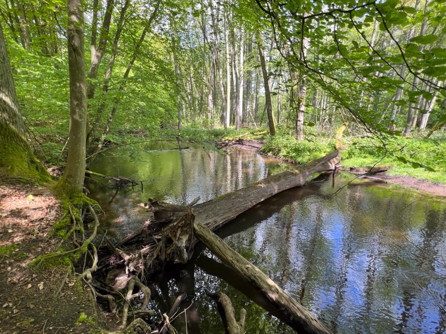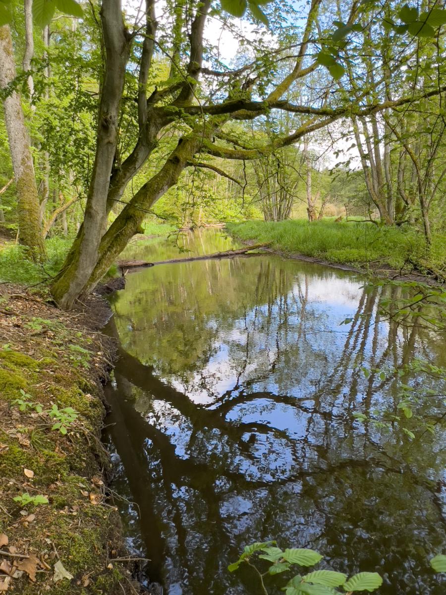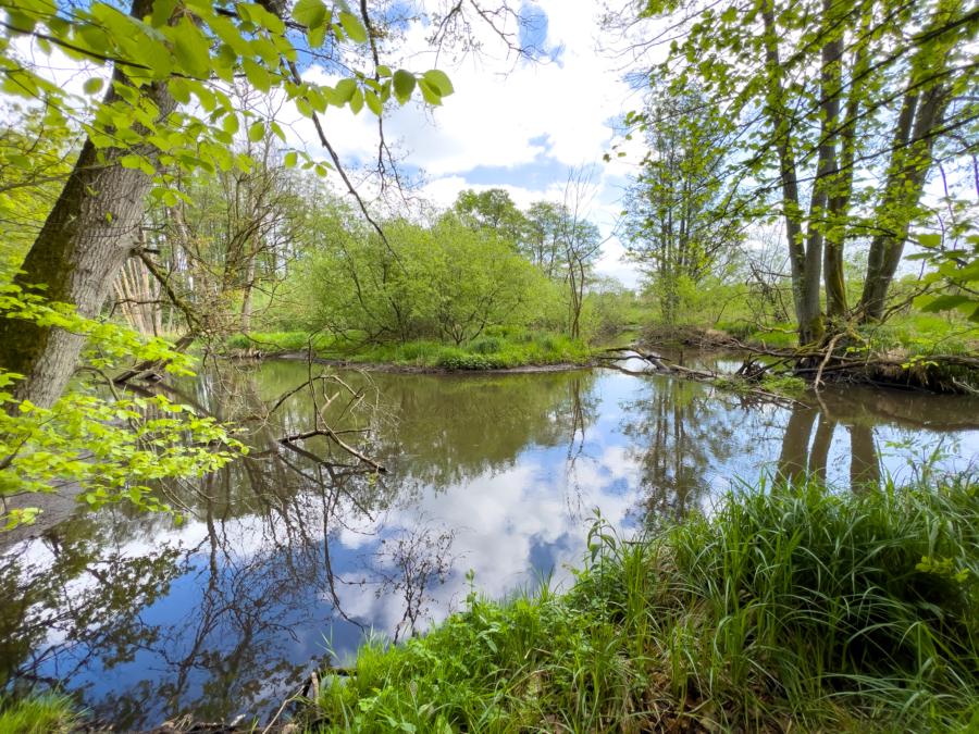 Gut einen Kilometer schlendern wir gemütlich durch den Auenwald, bis unser Weg den Kreuzbach quert, der als Zulauf hier in die Stepenitz mündet.