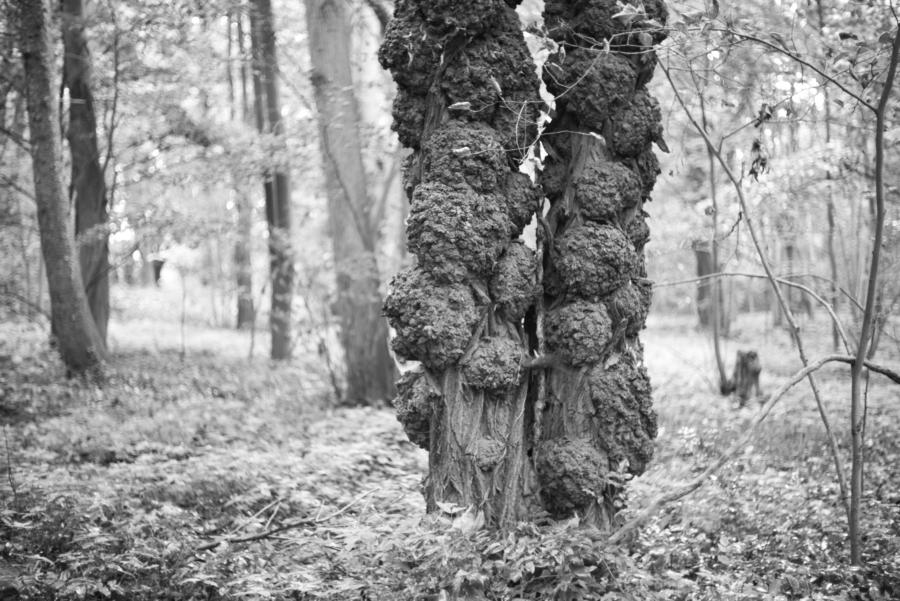 Es gibt ein paar Pfade, die durch den Wald führen, und auch die Bäume stehen in Reihen, doch abgesehen von diesen Leitlinien herrscht hier ein Urwald aus Büschen, Bäumen, Brennnesseln und Efeu, und Grabsteinen, die, von ihren Sockeln gekippt, umherliegen.