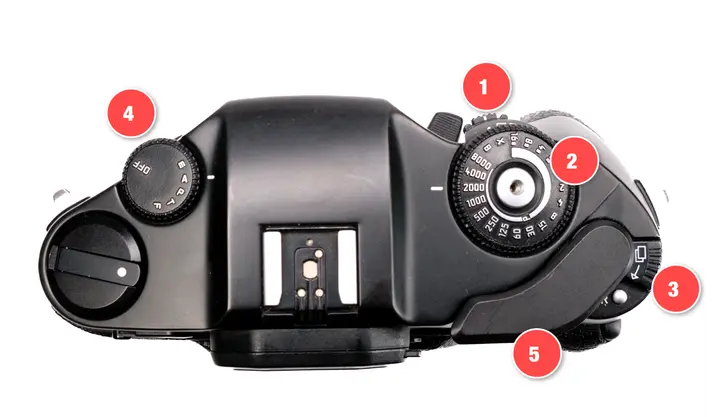 - Schnellspannhebel Verschlussaufzug und Filmtransport