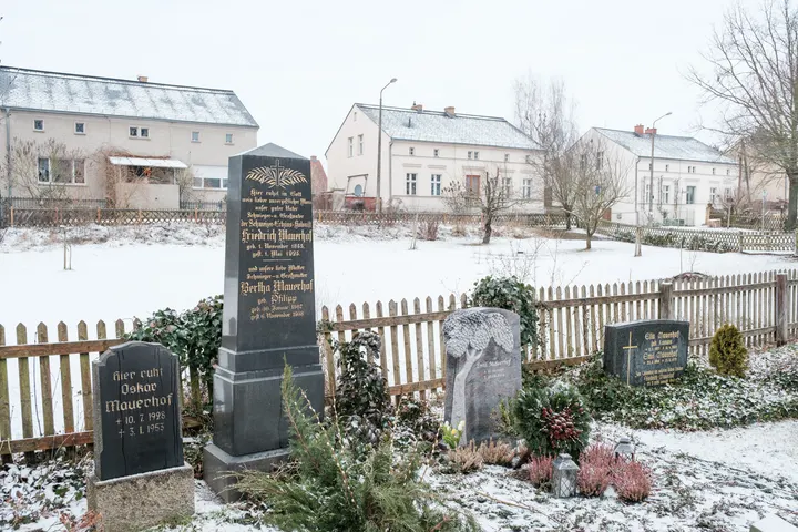 Die Nebengewässer und auch der nördliche Wublitzarm sind noch vereist, zur Havel hin ist das Wasser frei. In Nattwerder bekomme ich dank des weichen Winterlichts und der spärlichen Vegetation endlich mal die Gelegenheit, die Grabsteine der Schweizer Kolonisten zu fotografieren, die hier 1685 das Dorf gründeten.