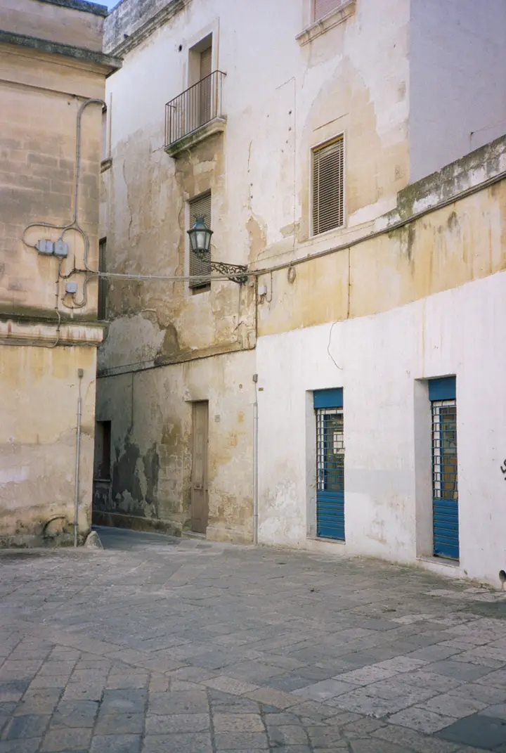 Mit der Regionalbahn von Foggia nach Bari, dort in den ICE nach Lecce. Das Wetter wird regnerisch. Ankunft in Lecce bei strahlendem Sonnenschein. Anderthalb Kilometer in die Stadt gelaufen auf der Suche nach einer Unterkunft. Meine Frage nach dem Weg zum Hotel wird zwar freundlich aber leider auch unbefriedigend beantwortet. Die eine Unterkunft existiere nicht mehr erfahre ich. Dann zur Adresse der zweiten Unterkunft. Tür ist zu, kein Klingelschild. Wieder weiter, die Orientierung verlierend komplett im Kreis gelaufen, treffe ich erneut die Leuten, die ich bereits gefragt hatte; der eine meinte nun ich solle warten, das Albergo mache bestimmt irgendwann auf. Ich bin müde vom Laufen, will in ein Zimmer, will nicht länger warten.