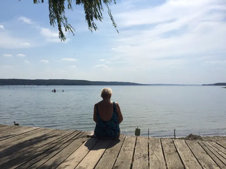 Der Weg führt hiernach am langgezogenen Tollensesee entlang - traumhaft im Schatten, rechts glitzert der See. Kurz von Neubrandenburg werden die dampfenden Füße im See gekühlt. Die gnadenlos tickende Uhr mahnt uns zur Eile, nicht wirklich erholt, aber erfrischt geht’s weiter.