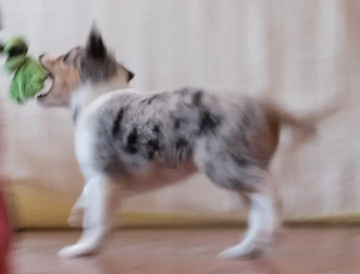 Das mit dem großen Geschäft klappt jetzt prima, ein Haufen landet auch im Wohnzimmer. So wie die Ängstlichkeit verschwindet, zeigt sie dass in ihr ein Hütehund steckt. Wenn sie mal ihre 5 Minuten hat, flitzt sie durch die Räume wie Speedy Gonzalez auf Kokain. Ach ja, die Wohnung gehört jetzt außerdem ihr. Der Ochsenpimmel (Ochsenziemer) wird links liegen gelassen, meine Hände, Schuhe, Socken werden schmerzhaft durchgekaut. Au ha, da kommt noch ein Stück Arbeit auf mich zu.