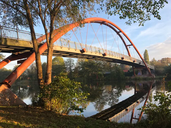 Direkt an der Brücke sind Wasssersportvereine ansässig; im Kanal sind Tore für Kanupolo angebracht.
