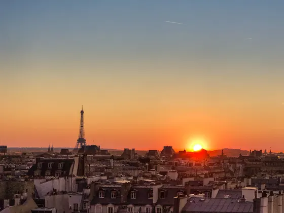 Zum Abend hin gehen wir Essen im “Les Flores”; gebucht über die App “The Fork”. Um 20 Uhr spazzieren wir noch zum Centre Pompidou, klettern aufs Dach und werden mit einem Sonnenuntergang hinter dem Eiffelturm belohnt.