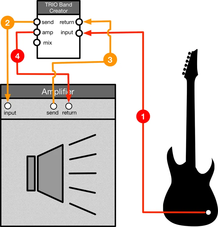 Verbindung des TRIO Band Creators mit der Effektloop eines Gitarrenamps