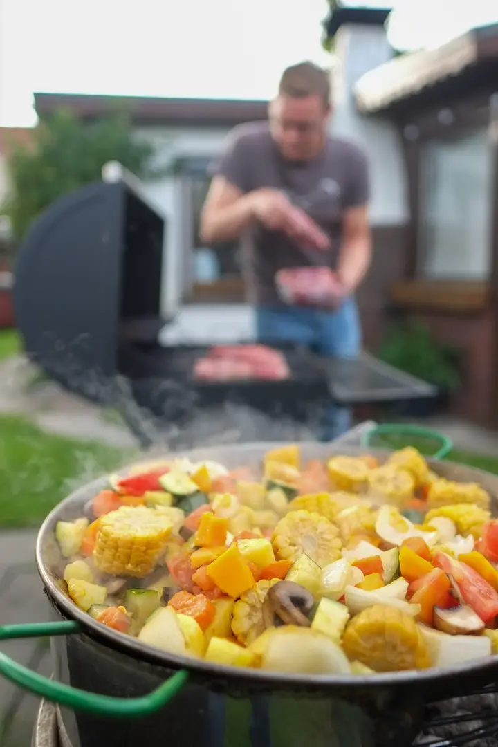 Der Abend fand im Garten statt; das Licht war prima, die Gäste herzlich und der Grill wurde kundig befeuert und bedient.