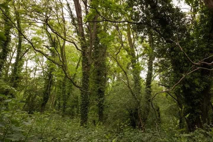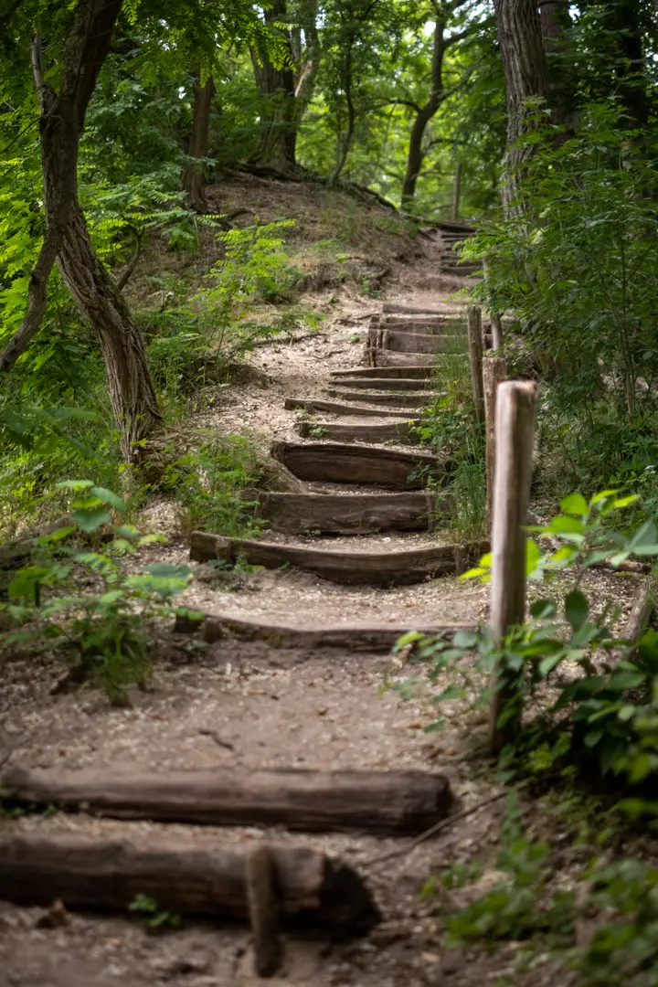 Aber auch wenn man nicht Höhenluft schnuppern kann, der Wald ist wunderschön. Zunächst kommt man an einem “Belvedere” Aussichtspunkt vorbei (auch dieser Name kann nicht ganz die Erwartungen erfüllen), und kurz danach taucht man ein in einen Urwald. Der Weg führt um ein altes Ziegeleigelände herum, welches immer noch in Betrieb ist. Durch das Gelände ziehen sich auch an manchen Stellen Gleise, die man zum Transport des Tons nutzte, welcher hier dem Boden entnommen wurde. Eben dieser Tonabbau ist auch für die topologischen Verwerfungen der Landschaft mit verantwortlich.