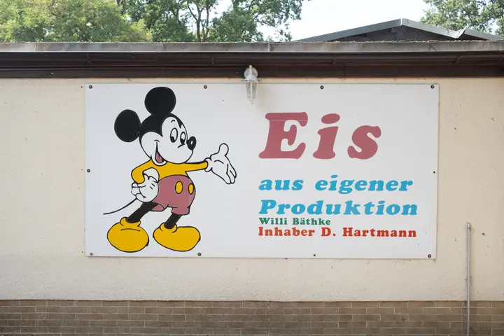 Zum Schluss fahren wir noch zum Eiscafe an der Dranseschlucht. Hier bin ich ein paar Mal vorbeigeradelt, aber hatte nie die Muße einzukehren. Heute ist der richtige Zeitpunkt dafür. Auch hier gähnende Leere, nur zwei andere Tische sind besetzt. Wir bestellen uns Espresso und Eis im Becher, und ich stelle zu spät fest, dass man hier noch das Eis in der original DDR Muschel bekommen kann. Es schmeckt auch ohne Muschel prima, das nächste Mal machen wir es dann richtig.