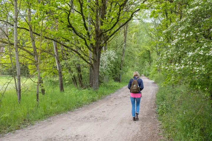 Es ist immer noch fürchterlich kalt, aber die Sonne kommt hervor und lässt das frische Frühlingsgrün der Laubbäume leuchten. Vogelstimmen erklingen, und es geht im Auf und Ab durch den Wald. Buchen und Eichen wechseln sich mit Kiefern und Fichten ab. Natürlich gewachsene, alte Bäume, zu deren Füßen sich Blaubeersträucher breit machen.