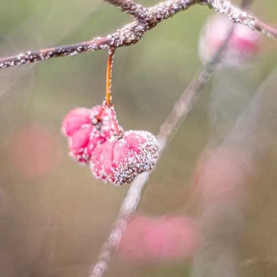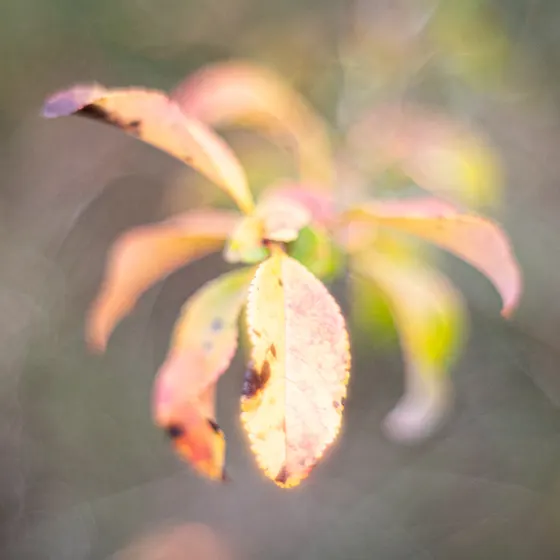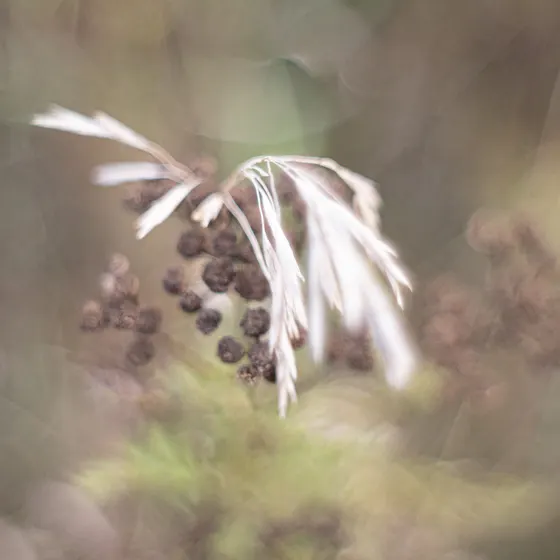 Auf meinen morgendlichen Spaziergängen konzentriere ich mich vor allem auf Nahaufnahmen bei Offenblende. Die Naheinstellgrenze von 33 cm erlaubt es mir, nahe genug an die Motive heranzukommen. Dabei taucht die Kamera in eine Welt der Unschärfe ein, in der nur eine hauchzarte Ebene scharf abgebildet wird, während der Rest in einem Schleier aus Andeutungen verschwimmt.